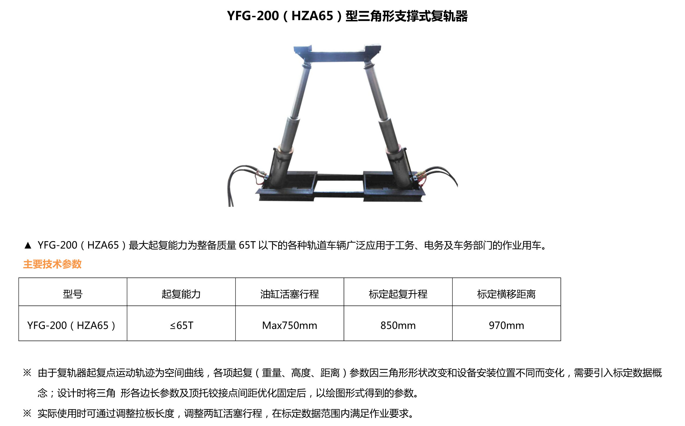 >> YFG-200(HZA65)三角形支撑式液压复轨器
